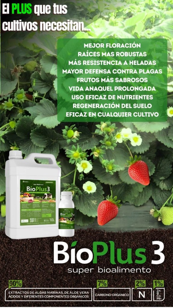 BioPlus 3 es el Plus que tus campos necesitan. No importa si tienes fresas u otras frutas, si es verduras, pastos o flores, BioPlus 3 beneficia cualquier planta. Llámenos para probarlo 3653-3868